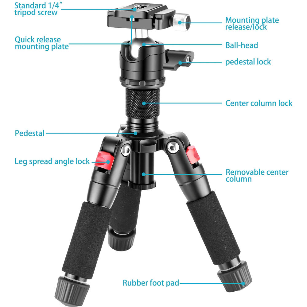 - Neewer M521 Desktop Mini Tripod with Arca-Type Ball Head (19.7")
