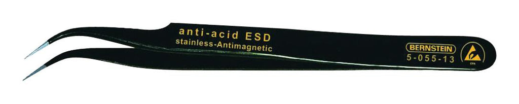 This is a Tweezer, ESD, SMD, Sickle, Pointed, Stainless Steel, 120 mm Length product from BERNSTEIN WERKZEUGFABRIK with the model number 5-055-13
