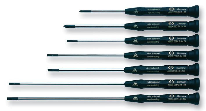 1 x slotted, sizes: 2.5 x 75, 3.0 x 100, 3.0 x 150, 4.0 x 100 & 4.0 x 150mm. 1 x Phillips, sizes: 0 x 60 & 1 x 80mm.