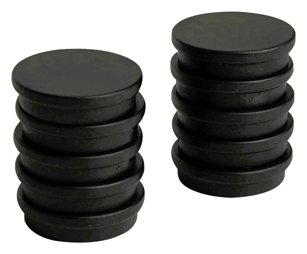 RM768/BLK is a marker magnet (pack of 10). The marker magnets are also called notice board magnets, office magnets, fridge magnets, planning magnets, memo magnets and display connectors magnets. The marker , Rugged magnets are ferrite magnets with a coloured plastic cap / shell. The 20mm diameter marker magnet is for standard performance noticeboard magnets. The marker magnet has a flat topped surface with an ergonomically designed rim around the outer diameter for easier grabbing and handling. One common application of the marker magnets is for traffic light indications (Red, Yellow/Orange and Green) to indicate the status of a task on a magnetic planning chart.