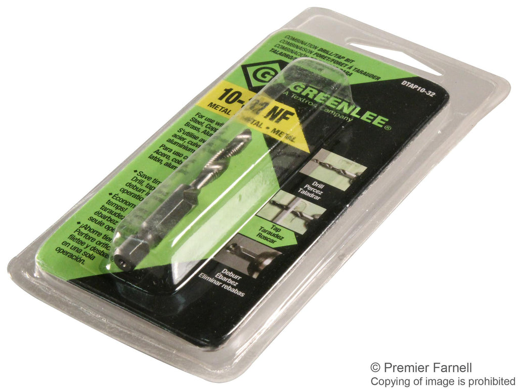 This is a 10-32NC DRILL / TAP BIT product from GREENLEE COMMUNICATIONS with the model number DTAP10-32