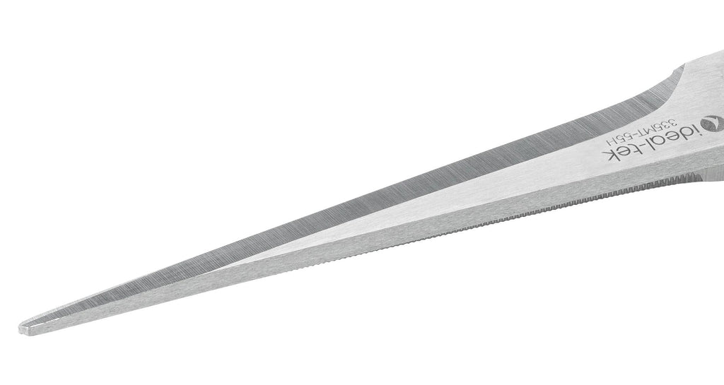 - Straight, fine, pointed, micro-serrated tip