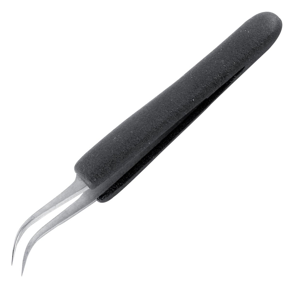 The D02292 is a 120mm ESD Tweezer made of PVC body with anti-magnetic anti-acid resistant stainless steel tip and foam grip.