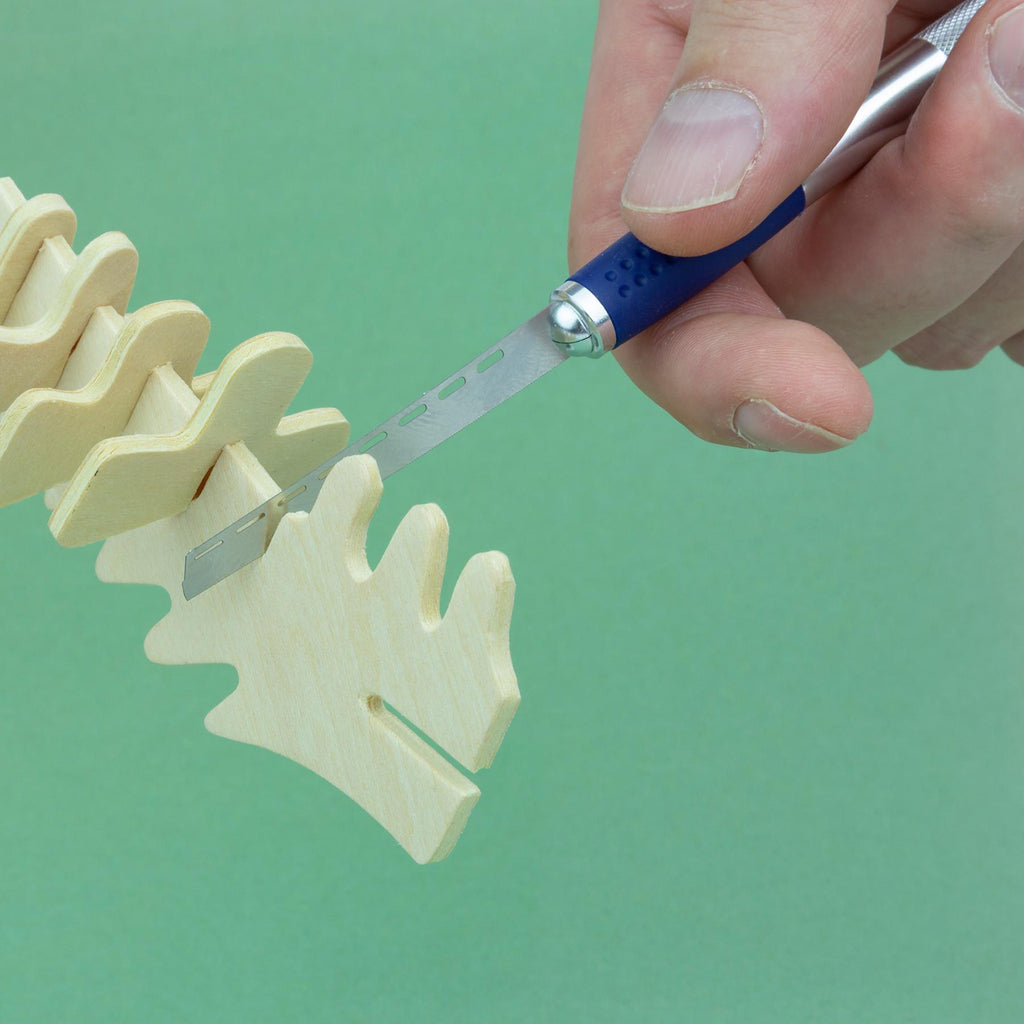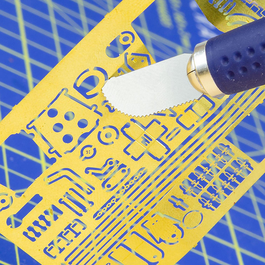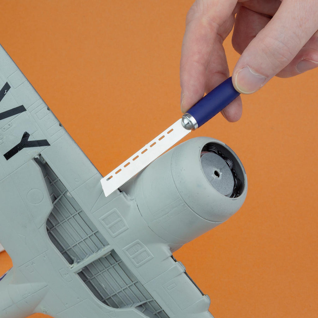 Soft grip x1 handle with x11 blade, magnetic end and 4x mini saw blades. Perfect for arts & crafts, model building and other intricate tasks. Includes 4 very fine saws (10 thou/ 0.24mm) for delicate and intricate cuts. Soft grip handle for comfort and easy control when cutting. Ideal for photo-etch parts, plastics & wood. This is a must for all crafters, hobbyists and professionals.