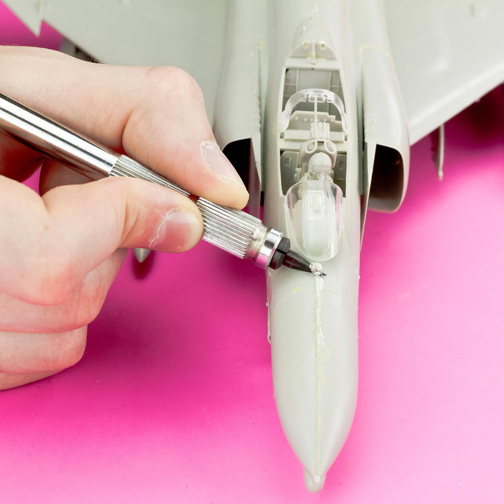 A sturdy handle with three-sided sharp tip, designed for scraping and deburring plastic, soft metal, laminates and removing solder. It has a safety holder with reversible blade. A useful tool for modelling, crafts & smaller DIY tasks.