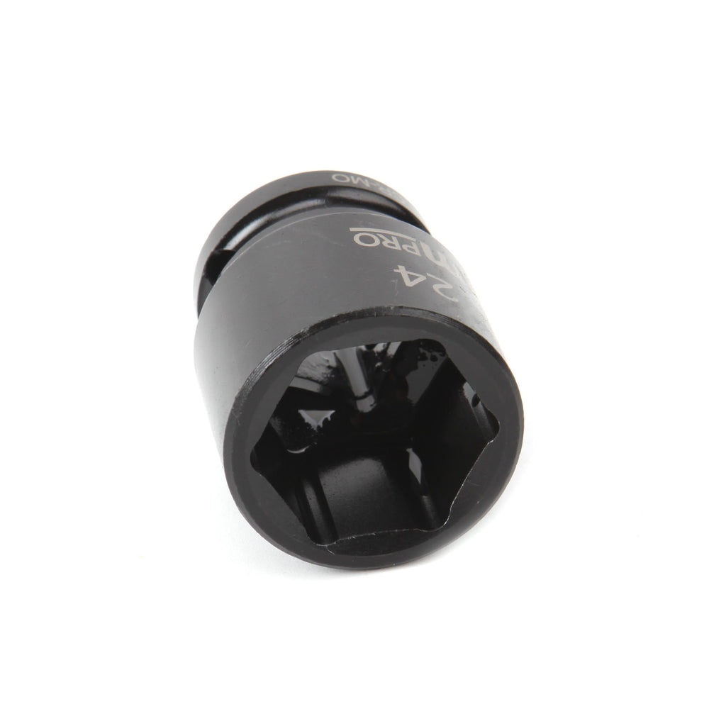 These Impact Sockets are crafted with a hexagonal open-end design for optimal grip and versatility in various applications. Featuring a robust 1/2" square interface, these sockets are engineered for compatibility with a wide range of power tools and equipment. Crafted from high-quality CR-MO (chromium-molybdenum) material, they offer exceptional strength and durability to withstand high torque and impact forces. The sleek black surface finish enhances their aesthetic appeal and provides corrosion resistance for long-lasting performance. Available in sizes ranging from 10mm to 24mm, these Impact Sockets are indispensable tools for professionals and DIY enthusiasts, ensuring precision and efficiency in every task.