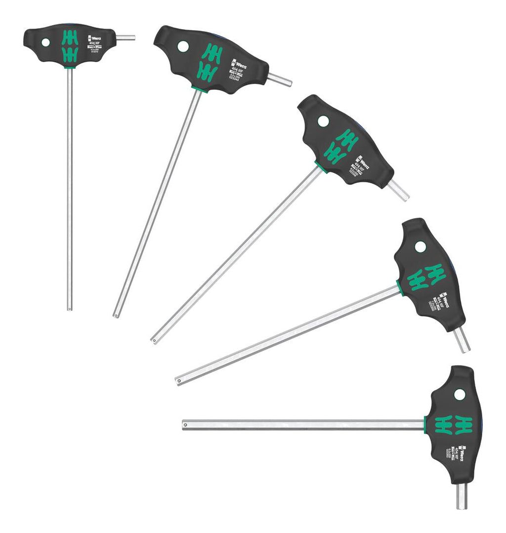 05136070001 is a tool set with 5 T-handle screwdrivers for hexagonal socket screws. With extra-long blades for low-lying couplings. Hex-plus offers larger contact surfaces in the screw head. The notch effect is reduced to a minimum and the destruction of the screw is nearly eliminated. With holding function to hold the hexagonal socket screw securely on the tool. Particularly suitable for operations in plumbing, heating and air conditioning. T-handle screwdrivers: The ideal handle shape allows the transmission of particularly high tightening and loosening moments. The ergonomic shape of the handle fills the ball of the hand well, the fingers lie securely in the softly rounded recessed grips. The whole hand comes into contact with the handle and friction losses between hand and handle are avoided. Special surface treatment of the blades for high corrosion protection and optimum fitting accuracy in the screw.