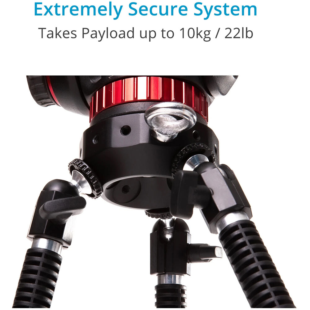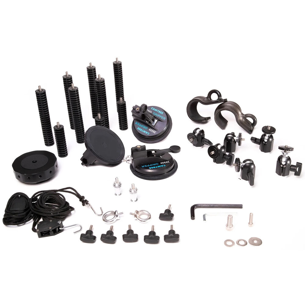 This modular system is based on three sturdy suction cups, articulated legs, and a camera hub with a 3/8"-16 thread. It includes a camera hub with 1/4"-20 and 3/8"-16 camera screws, ball head connectors, and both 3 and 6" leg sections for maximum positioning flexibility. To maintain maximum adhesiveness, use the included dust covers to keep the suction cups clean and dust-free when not in use. Two ratchet straps and hardware are included for creating safety lines for the mount, and a soft carrying case holds all the G-51 components.