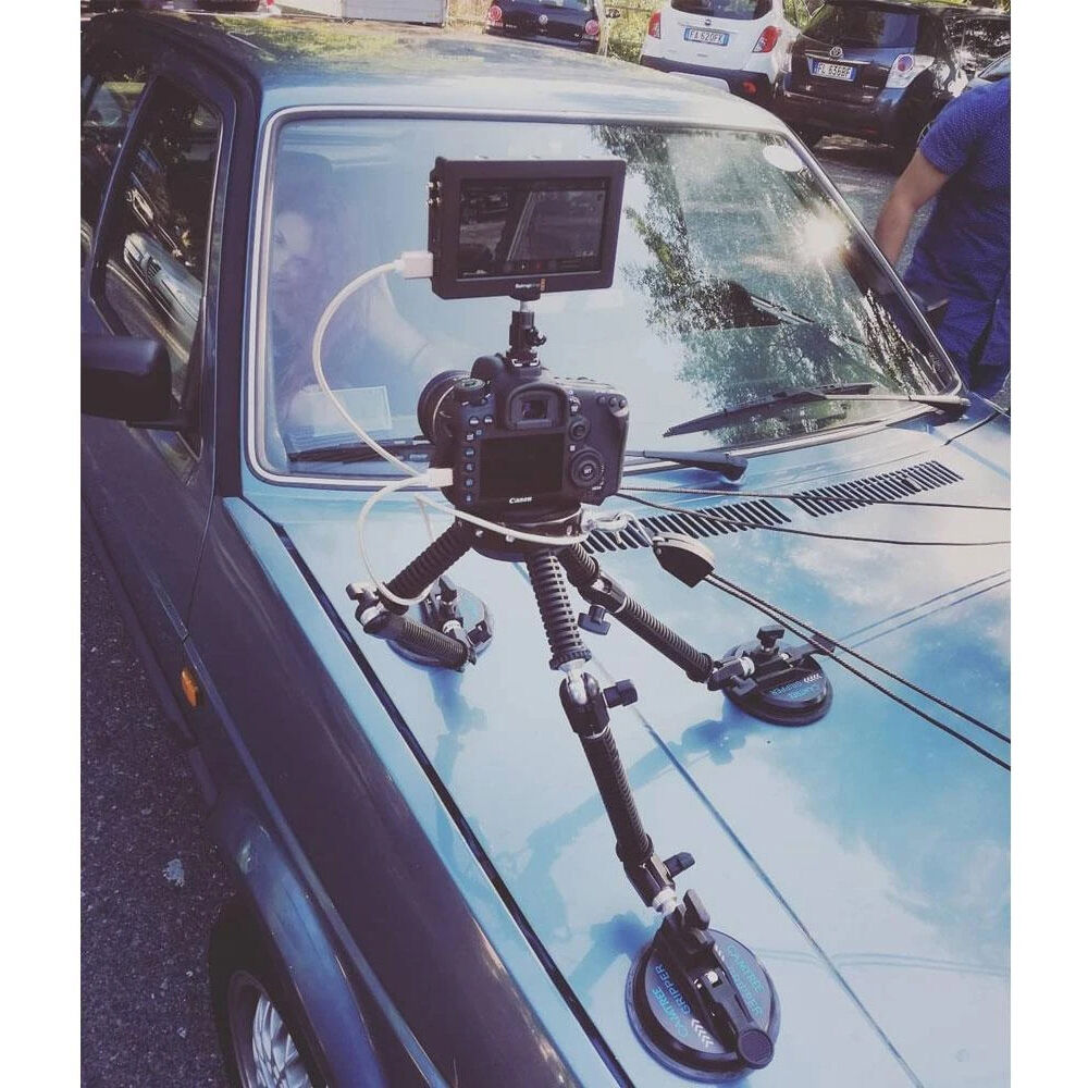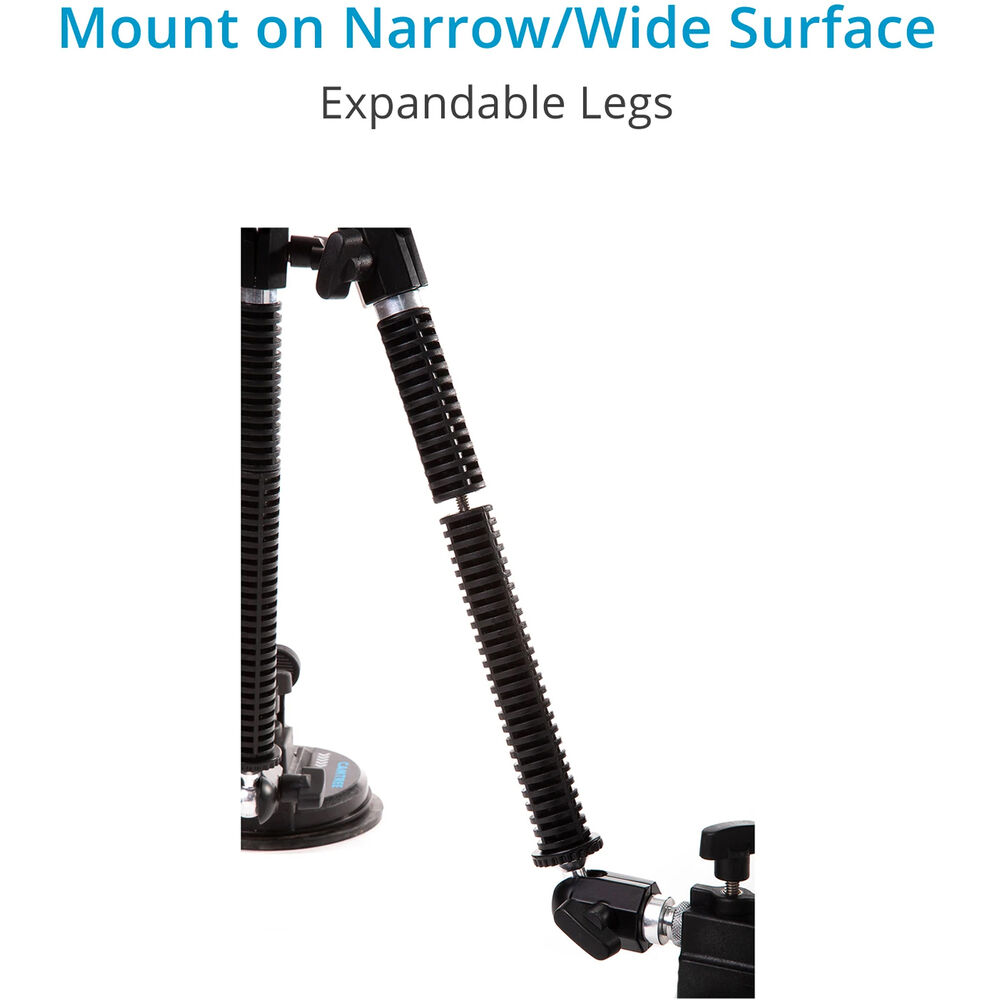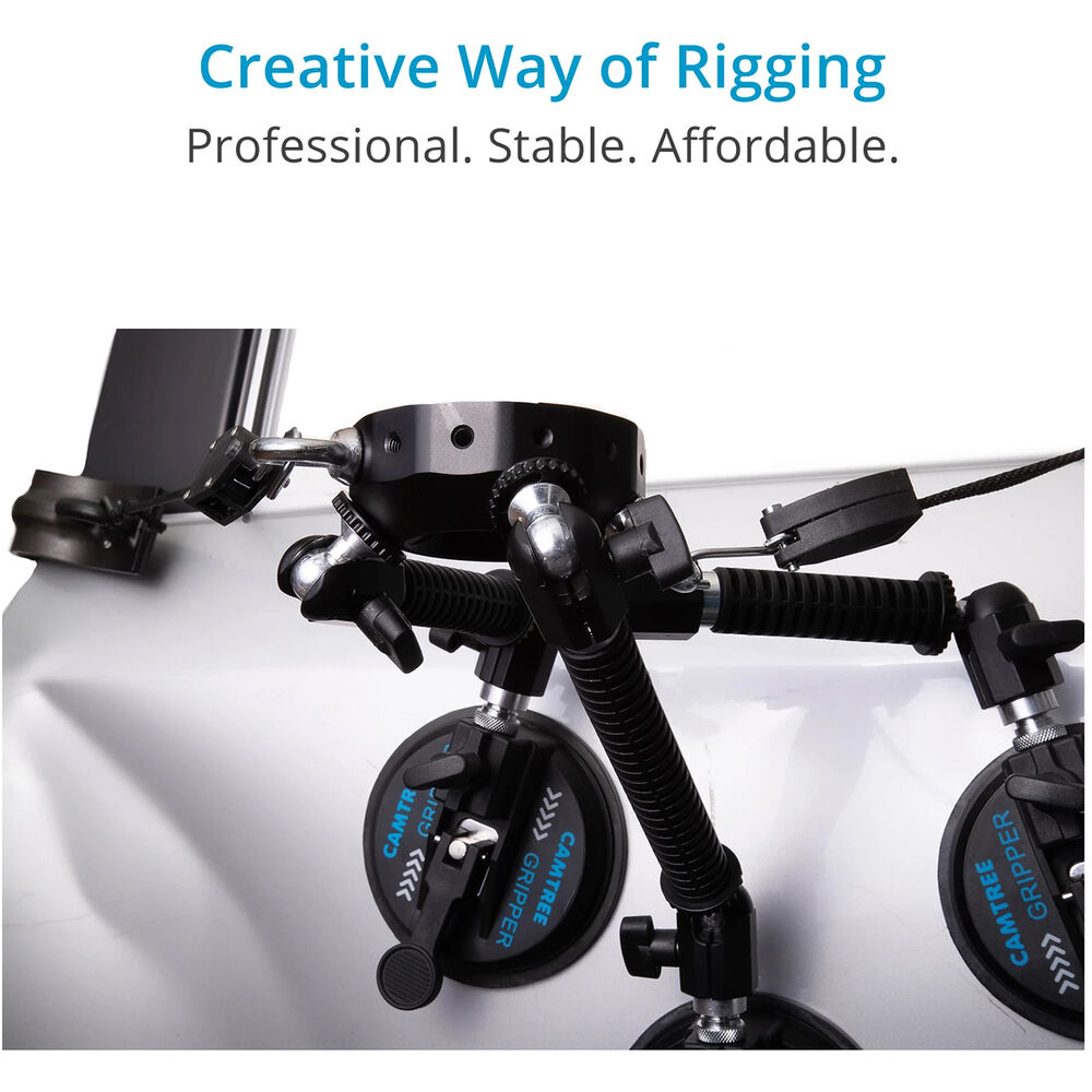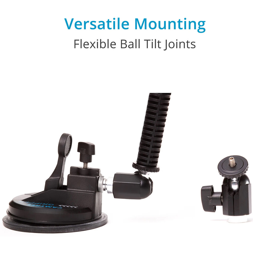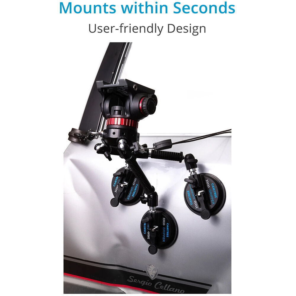 Capture interior or exterior vehicle-based shots with the G-51 Gripper Campod Suction Cup Car Mount from Camtree . Supporting camera rigs up to 22 lb while moving at speeds up to 25 mph or up to 44 lb for static shots, the G-51 can be mounted onto almost any vehicle surface including the hood, roof, side, or windshield.