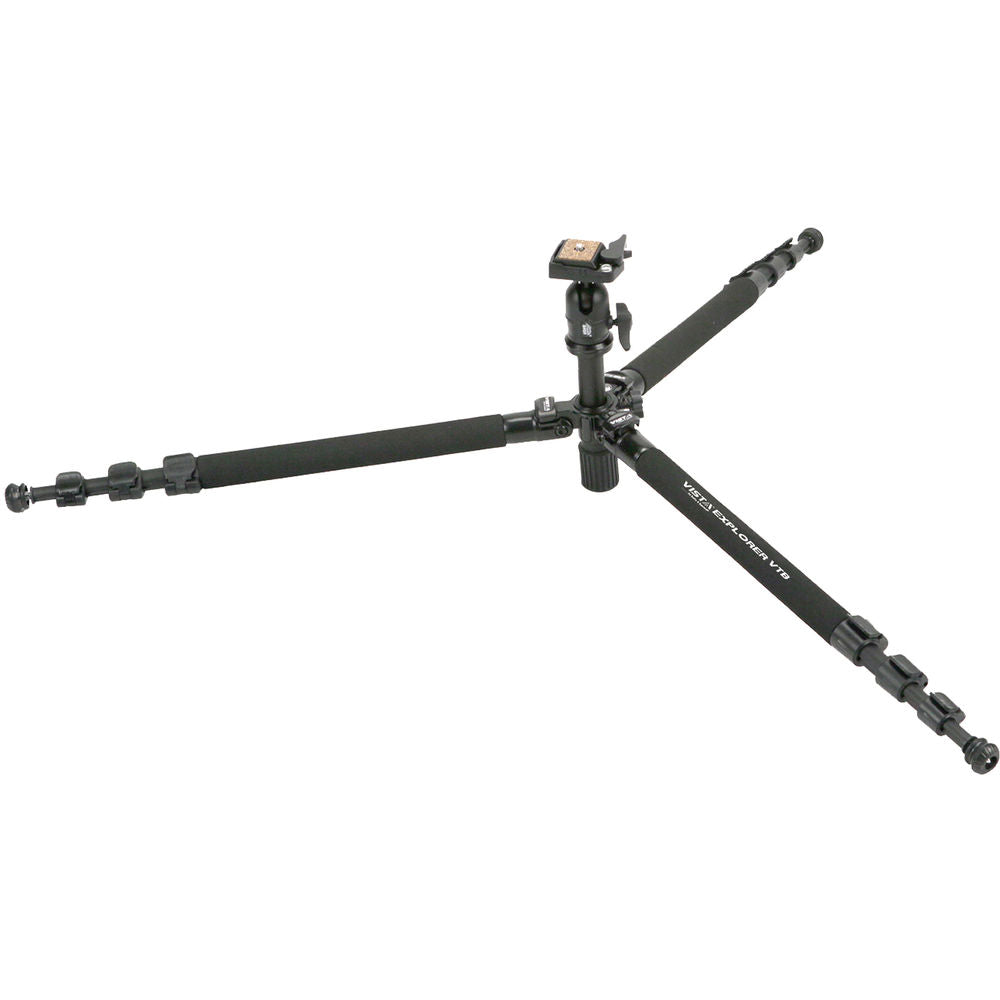 The Explorer Vista Tripod from Davis & Sanford is a 4-section support with a 2-section center column that can reach a maximum height of 63" when fully extended with the ball head attached. The system supports loads up to 8lb and folds down to 21". The included BHQ8 ball head has one locking knob to control the movement of the ball. A quick release plate is included.