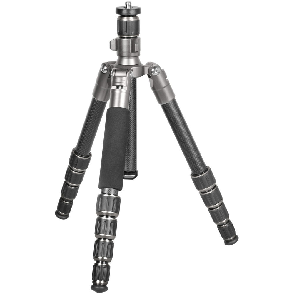 The FT-5021A aluminum MicroLite from Field Optics Research is a lightweight support, weighing only 2.1 lb, that can hold optics weighing up to 22 lb. Its five-part telescoping legs with twist locks can extend up to 50.4" tall and shrink to just 10.2" short. The tripod is also portable, measuring only 12.2" tall when folded. Its center column is reversible and comes with an attached ballast hook for additional stability.