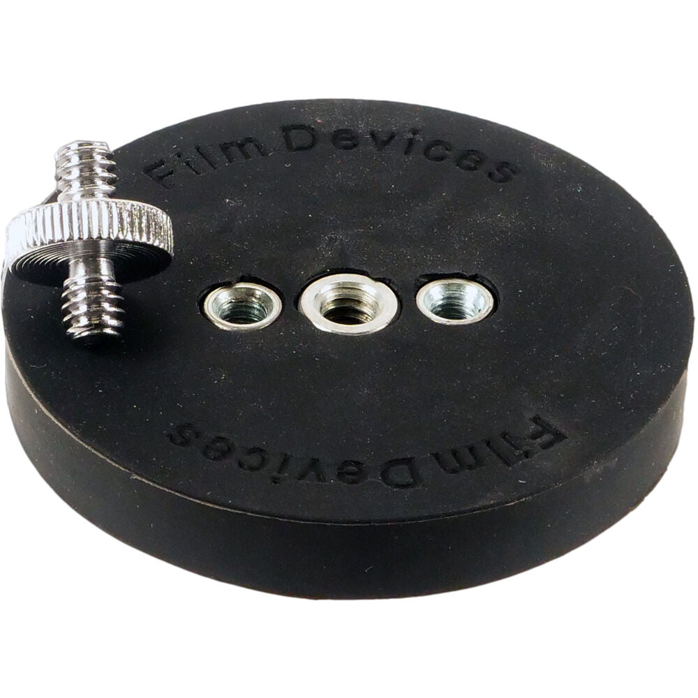 Compatible with Film Devices Camera Magnetic Mounting Kits, this 2.5" diameter Magnet provides a magnetic holding force of 35 lb. This magnet's mounting options consist of one 1/4"-20 thread, two 5mm threads, and one 1/4"-20 to 1/4"-20 coupler. A rubber coating protects your mounting surface against scratches when using the magnet.