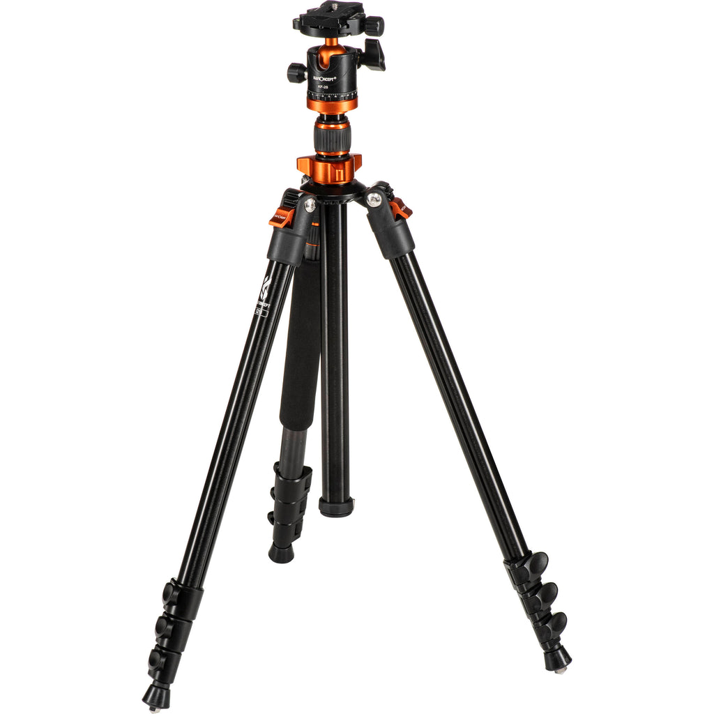 ThisMagnesium Alloy Travel Tripod with Rotating Lateral Multi-Angle Center Column from K&F Concept is a lightweight magnesium-alloy tripod that includes an Arca-type compatible ball head. It has a maximum height of 77.2" and can support up to 22 lb. It folds down to 19.7" and weights only 3.1 lb for easy transport or storage.