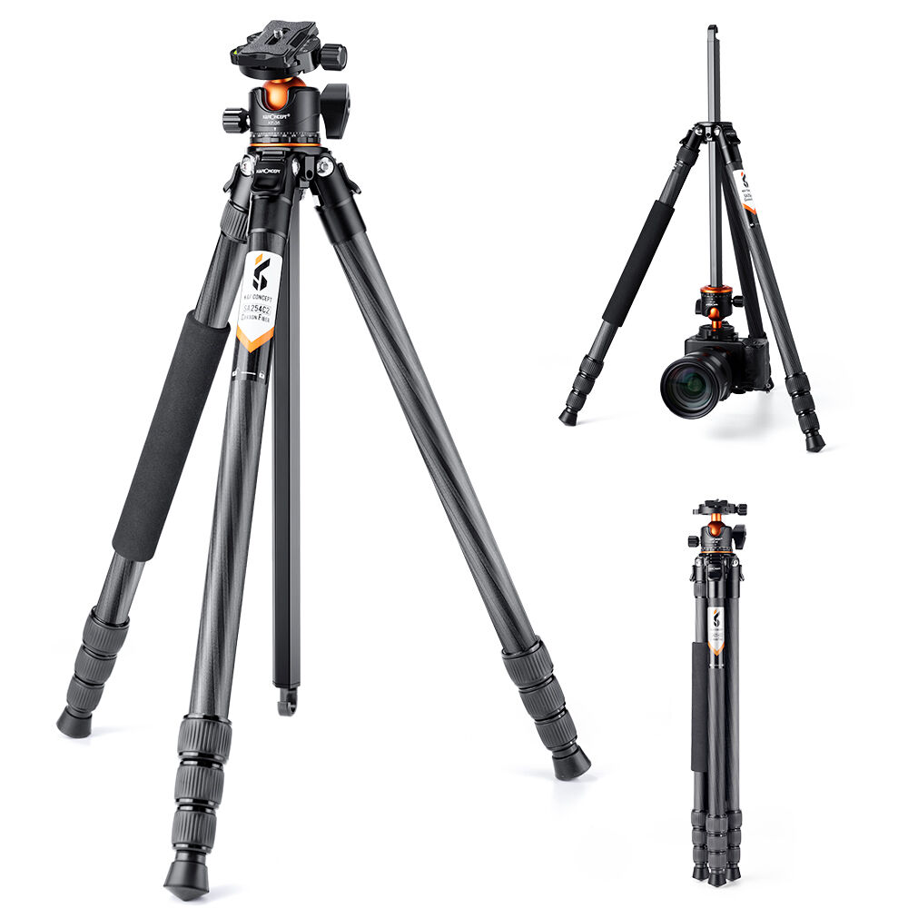 This 70" Professional Carbon Fiber Tripod with Monopod from K&F Concept is a versatile and lightweight carbon fiber tripod that features an Arca-type compatible ball head, plus a leg that converts into a full-featured monopod for use when a tripod may be too cumbersome. In addition, the center column can be removed and inverted for low-perspective shooting or macro photography.