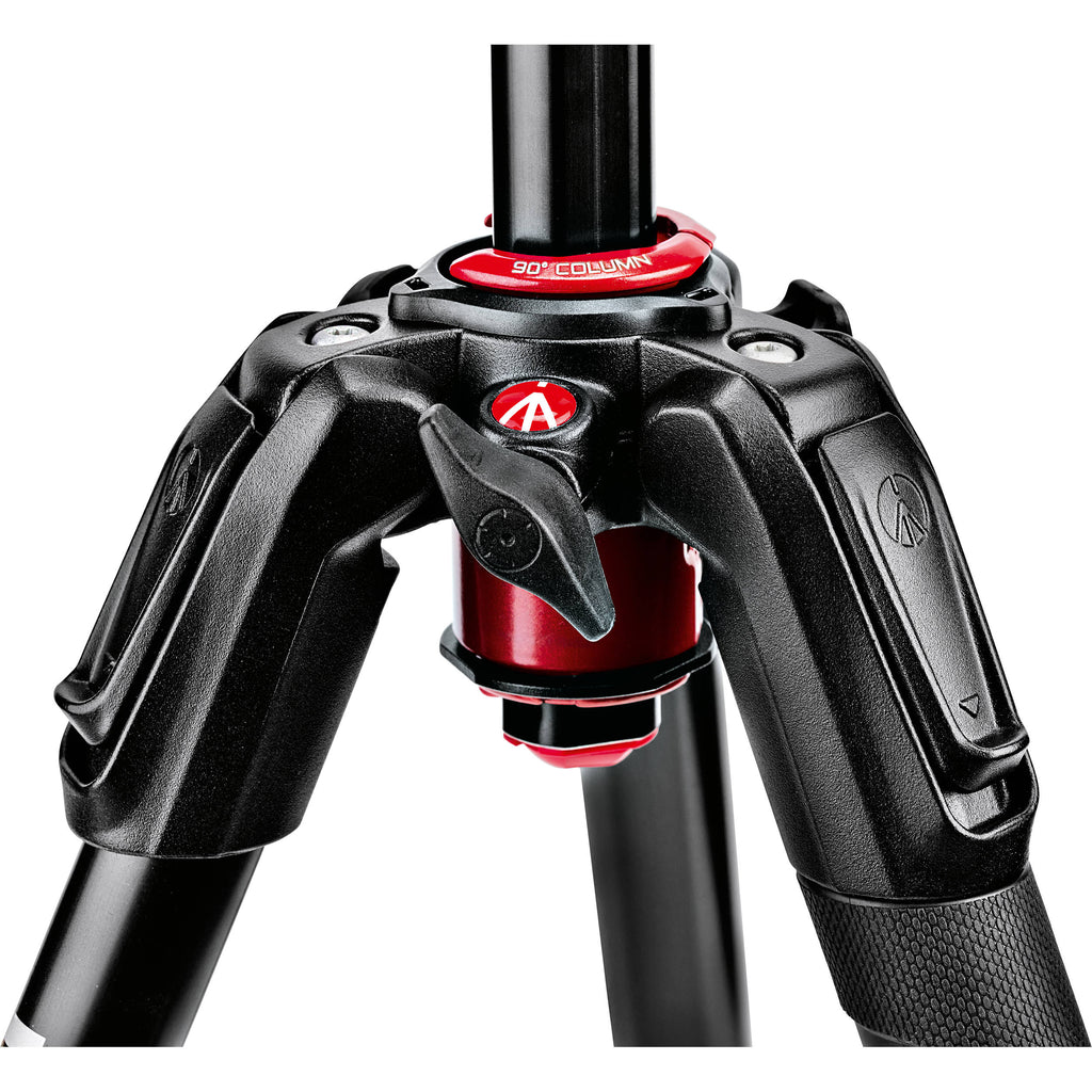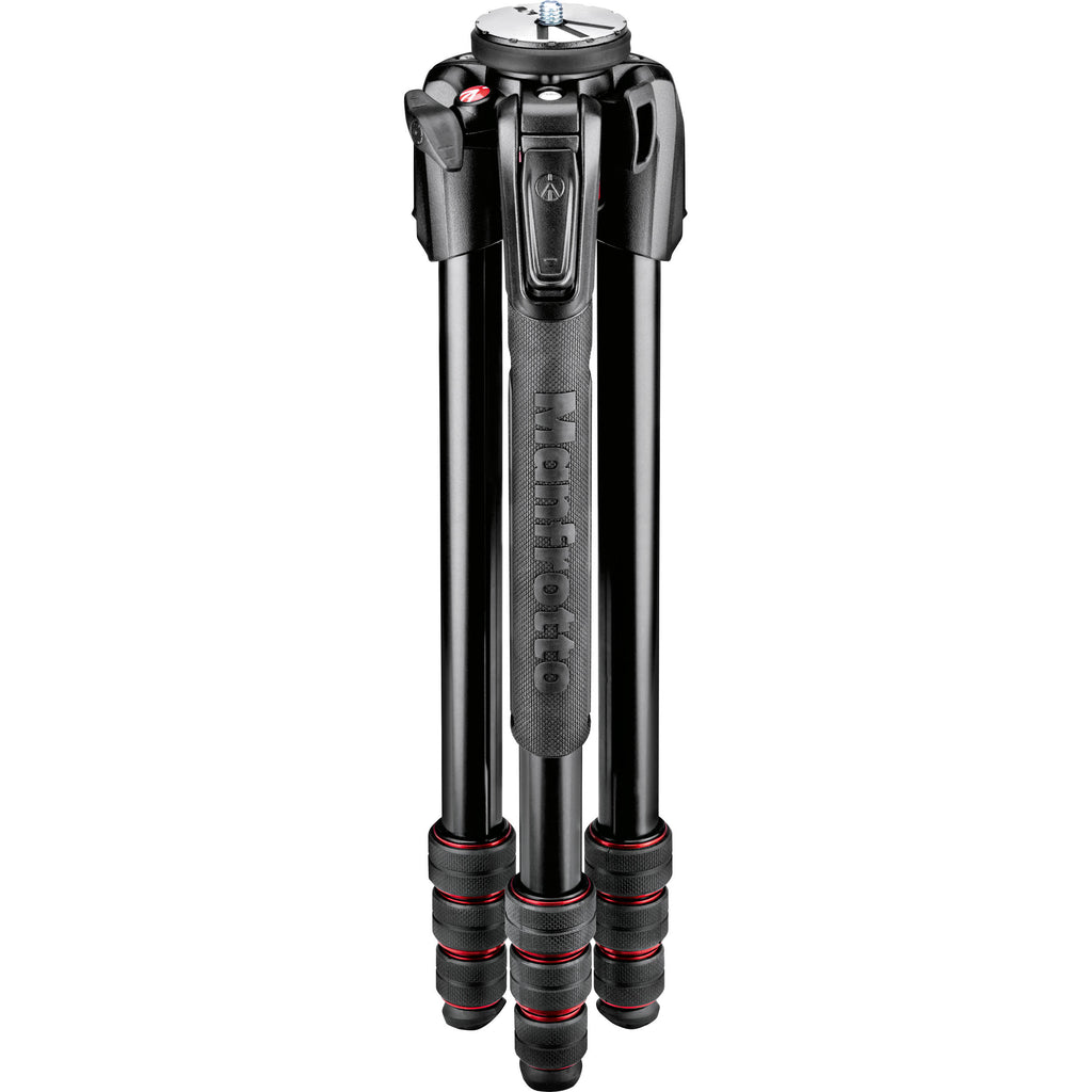 An especially compact yet versatile tripod, the 190go! Aluminum M-Series Tripod from Manfrotto has a maximum height of 59.8" with the center column fully extended, yet its four-section legs afford a folded length of just 17.7". Its aluminum construction weighs 3.7 lb and can support over 15 lb of gear.