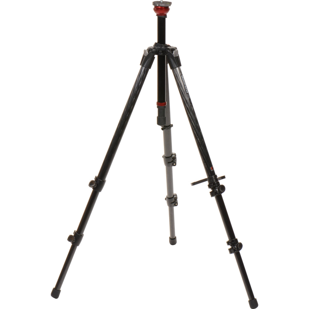 The Manfrotto 755CX3 MagFibre 2-Stage Tripod is intended for high-definition camcorders weighing up to 15.4 lb ( 7kg ). It features carbon fiber composite leg tubes and fast-action stage clamps. There is also a built-in 50mm half-ball leveling system that can be locked via a detachable rotating grip. This facilitates camera platform leveling without adjusting leg length. The rapid center column adds 10" to the maximum height of the cameras platform.