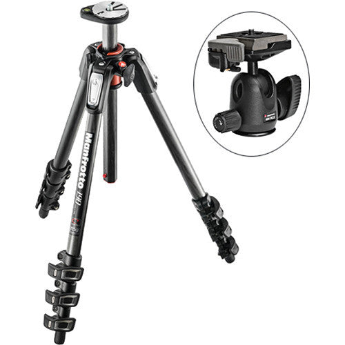 This kit from B&H combines the Manfrotto MT190CXPRO4 Carbon Fiber Tripod with the 494 Mini Ball Head and RC2 Quick-Release System. The tripod extends to 66.4", folds to 24.0", and weighs 4.3 lb, while holding up to 8.8 lb.