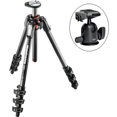 This B&H Kit pairs the Manfrotto MT190CXPRO4 Carbon Fiber Tripod with a 496RC2 Compact Ball Head. Holding up to 13.2 lb of gear, and with a maximum height of 66.9", the tripod features a Quick Power Lock System that allows you to completely extend the tripod legs with just one hand. Once set up you can use the MT190CXPRO4's rapid center column in standard vertical mode or swing it into horizontal position like a boom with Manfrotto's 90° column feature. Enlarged tabs on the individual leg angle selectors allow you to get down low for macro work with the column in horizontal mode. And once you're down there you can attach any of Manfrotto's flexible or articulated arms to hold lights or reflectors via the Easy Link plug built into the tripod's spider.