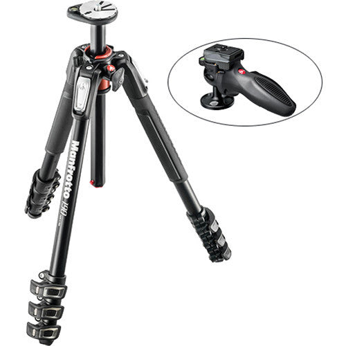 This kit from B&H combines the Manfrotto MT190XPRO4 Aluminum Tripod with the 324RC2 Joystick Head and QR Plate. The tripod extends to 67", folds to 23.2", and weighs 5.6 lb, while holding up to 7.7 lb.