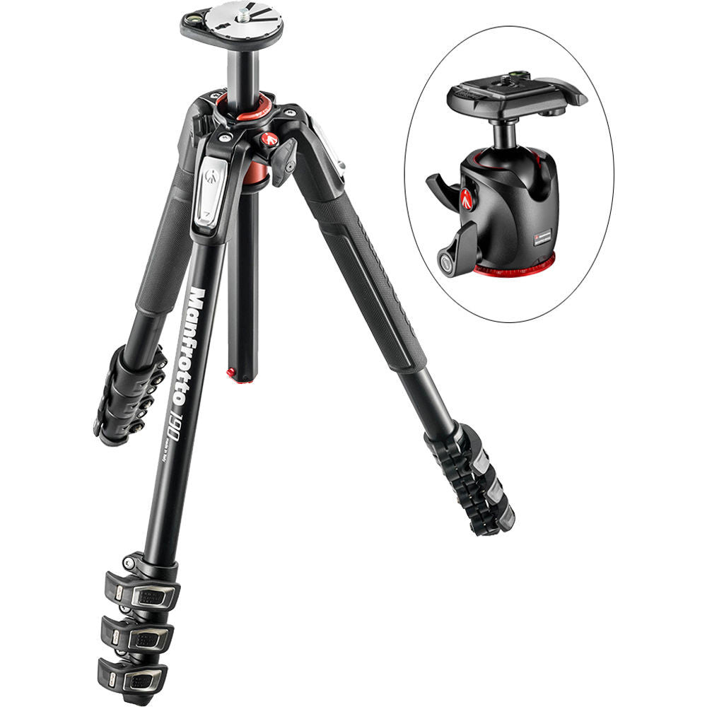 This B&H Kit combines the Manfrotto MT190XPRO4 Aluminum Tripod with the XPRO Ball Head with 200PL Quick-Release System . The MT190XPRO4 is a 4-section support with Manfrotto's Quick Power Lock System that allows you to completely extend the tripod legs with just one hand. Once set up you can use the rapid center column in standard vertical mode or swing it into horizontal position like a boom with the 90° center column feature to get down to a minimum height of 3.2". You can attach any of Manfrotto's flexible or articulated arms to hold lights or reflectors via the Easy Link plug built into the tripod's spider.