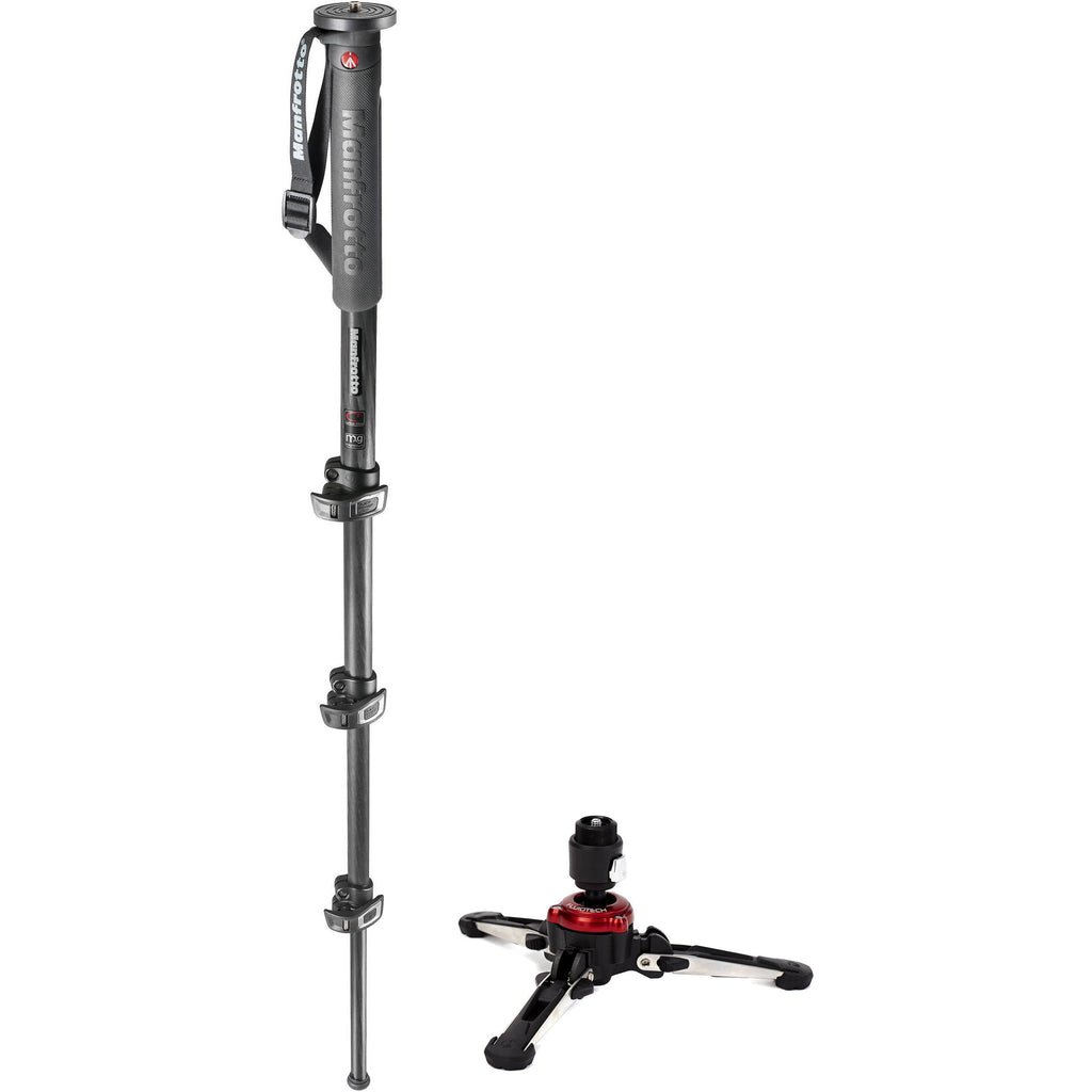 The Manfrotto XPRO MPMXPROC4US Carbon Fiber Monopod with XPRO Fluid Base Kit was put together by B&H to offer an ideal balance of mobility, steadiness, and support. The kit includes a 4-section monopod and a fluid base with 360 degrees of movement and 3 retractable feet.