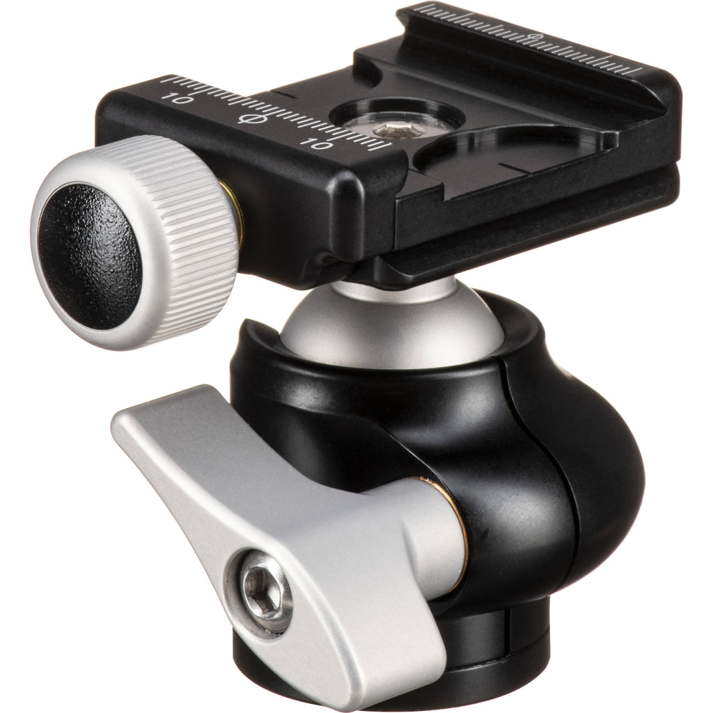 Despite the BH-25's small stature it's an impressively capable support, able to hold up to 8.8 lb, while standing just 2.6" tall and weighing a negligible 6.5 oz. The single action design of the head allows the user to unlock the 360° pan and the ball at the same time, facilitating completely free movement in any direction and locking in any position. The T-style lever lock assists the user when locking and unlocking the ball head by providing a large grip for maximum leverage. The T-style handle is also set on a spring loaded ratcheting joint, which allows the user to rotate the handle, freeing it of obstruction caused by large tripod baseplates.