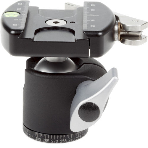 At just 2.9" in height with a 1.2" ball, the BH-30 Ball Head with Full-Size Lever-Release Clamp from Really Right Stuff is a great support solution in a small form factor. With a load capacity of 15 lb, the BH-30 is a great match for pro cameras with lenses up to 70-200mm and mirrorless and bridge cameras alike. The head features an oversized spring-loaded locking T-lever that can be conveniently pulled out and repositioned in 60-degree increments. The panning base has a separate lock and is laser-engraved in 2.5-degree increments from 0-360 degrees for accurate repeatability.