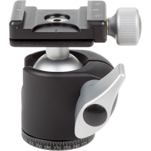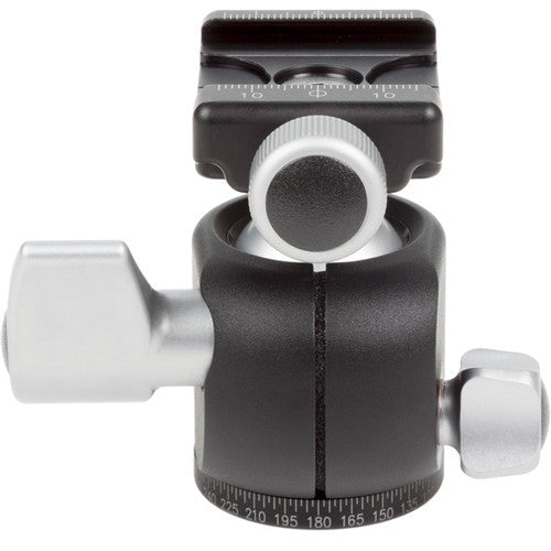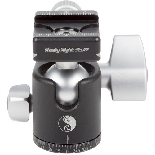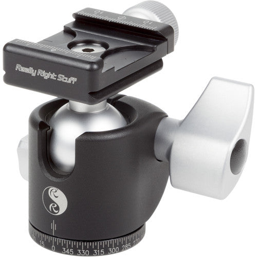 At just 2.9" in height with a 1.2" ball, the BH-30 Ball Head with Mini Screw-Knob Clamp from Really Right Stuff is a great support solution in a small form factor. With a load capacity of 15 lb, the BH-30 is a great match for pro cameras with lenses up to 70-200mm and mirrorless and bridge cameras alike. The head features an oversized spring-loaded locking T-lever that can be conveniently pulled out and repositioned in 60-degree increments. The panning base has a separate lock and is laser-engraved in 2.5-degree increments from 0-360 degrees for accurate repeatability.