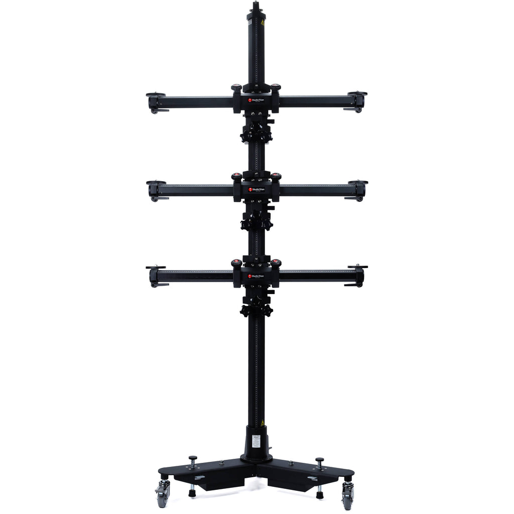 The STA 01-350 MK2-360SPIN 3-Arm Commercial Studio Stand from Studio Titan America is a 94" tall rotating studio stand designed for 360 Spin Photography. It has been developed in conjunction with Revo North America for the Vida Studio - 360 quick spin product photography platform. For 360 Spin photography applications it is critical that all cameras are aligned in the same vertical plane. This stand provides three horizontally-aligned arms, each arm can accommodate one camera for a total of three cameras on a single stand to achieve this critical requirement.