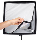 Designed for Litepanels Astra 1x1 light panels, this SNAPBAG Softbox from DoPchoice is a light modifier that diffuses and evenly spreads light with a silver interior. Simple to attach, the softbox attaches directly to the light panel and uses four elastic straps for a secure mount. The lighting modifier includes a carry bag and a front diffuser.