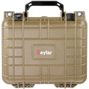 This tan 10.6" Small Case from Eylar is great for storing cameras, electronics, tools, and more. Customizable pluck-and-pull foam along with a sturdy design protects sensitive items during travel. This case is IP67 water-, dust-, and shockproof. An innovative pressure-equalization valve allows the case to quickly equalize to different air pressures when traveling from different altitudes. A rubber gasket lines the rim of the 4.12 x 7.12 x 9.25" interior-sized case, creating a waterproof seal when latched closed, and two padlock hasps allow this case to be secured with padlocks and meet TSA requirements for transport.