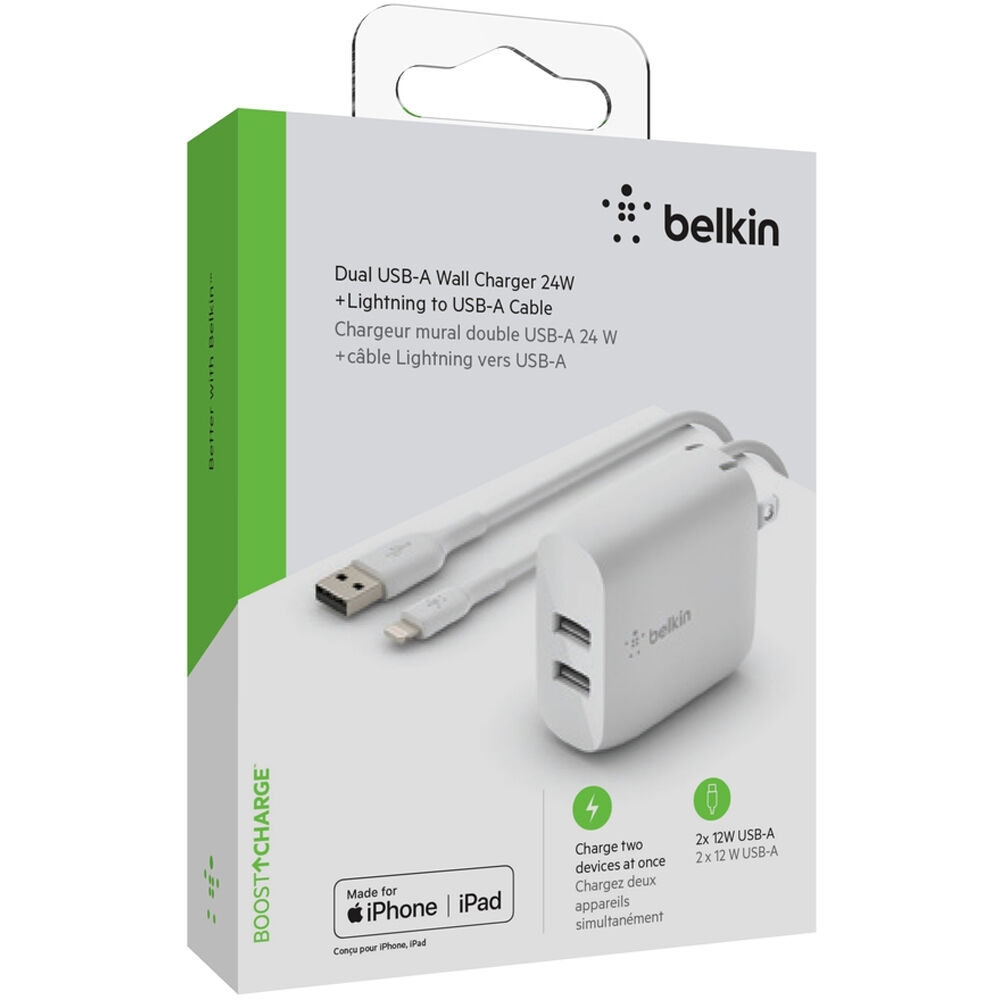 - Belkin Boost Charge 24W Dual USB Type-A Wall Charger with Lightning Cable