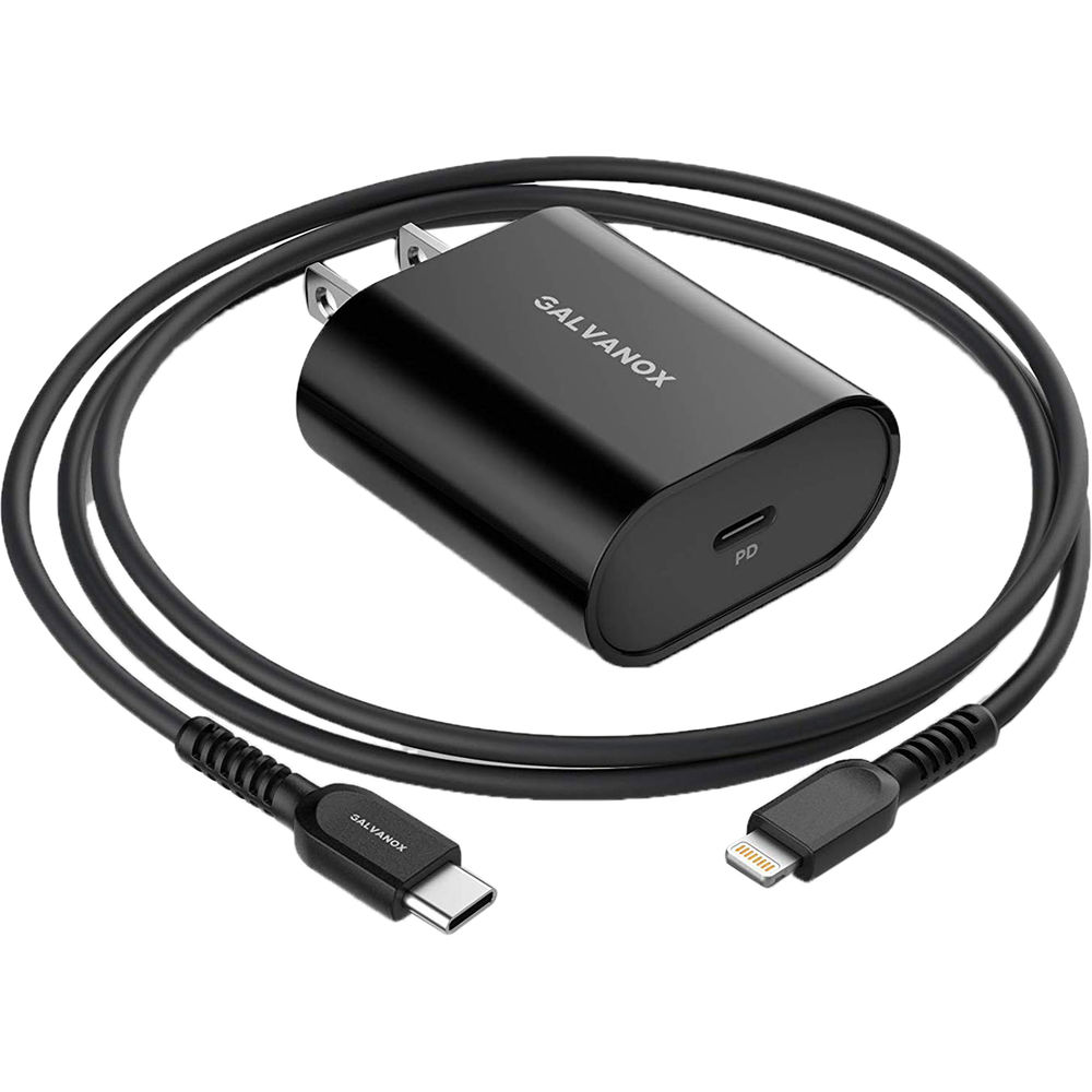 - Galvanox 18W USB Type-C PD/QC Wall Charger with Lightning Cable (Black)