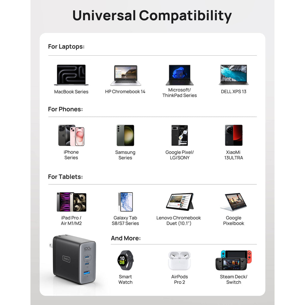 INIU Leopard 100W GaN 3-Port USB Wall Charger