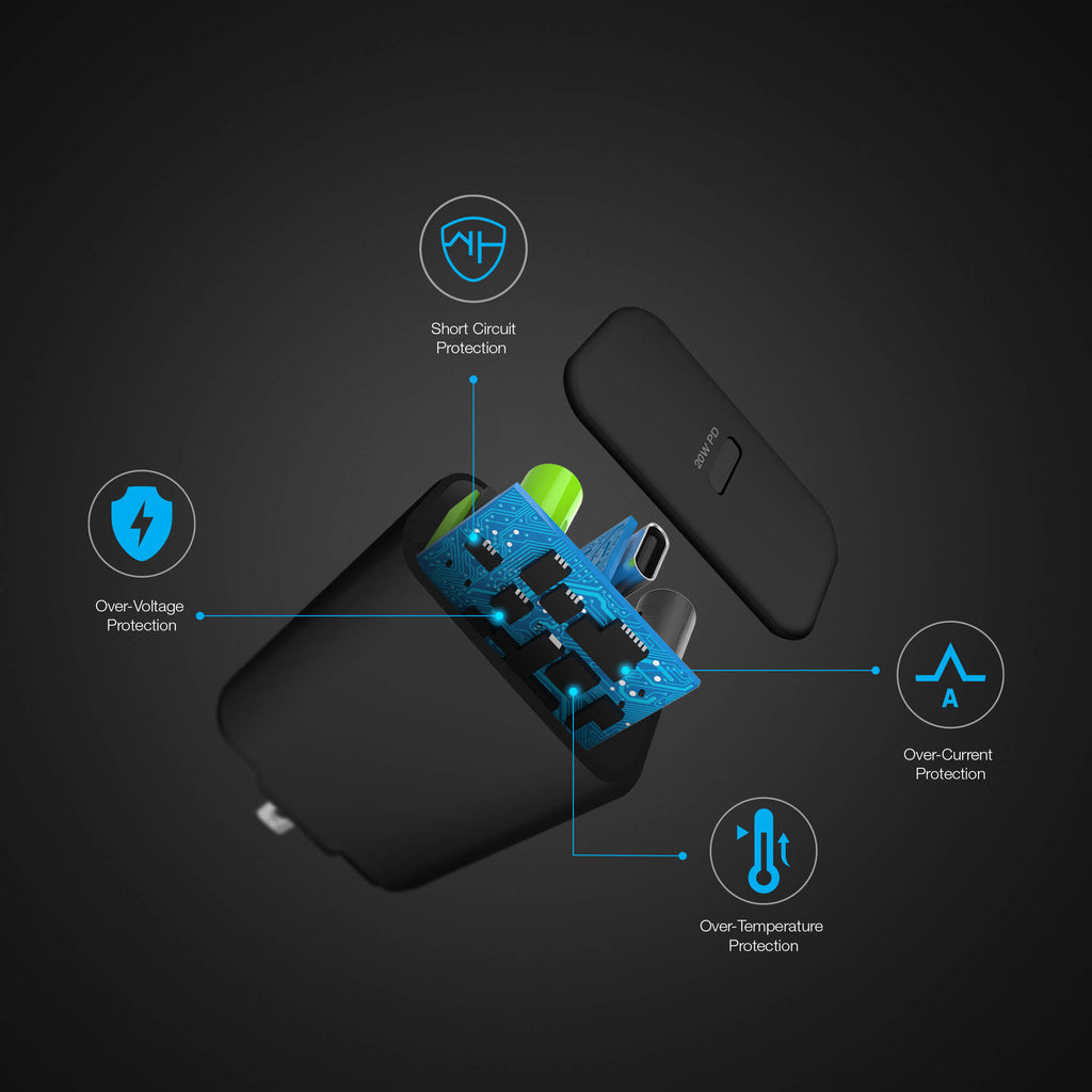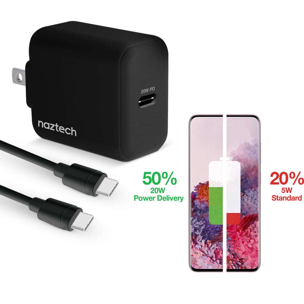 - Naztech 20W USB-C PD Wall Charger with USB-C Cable (Black)