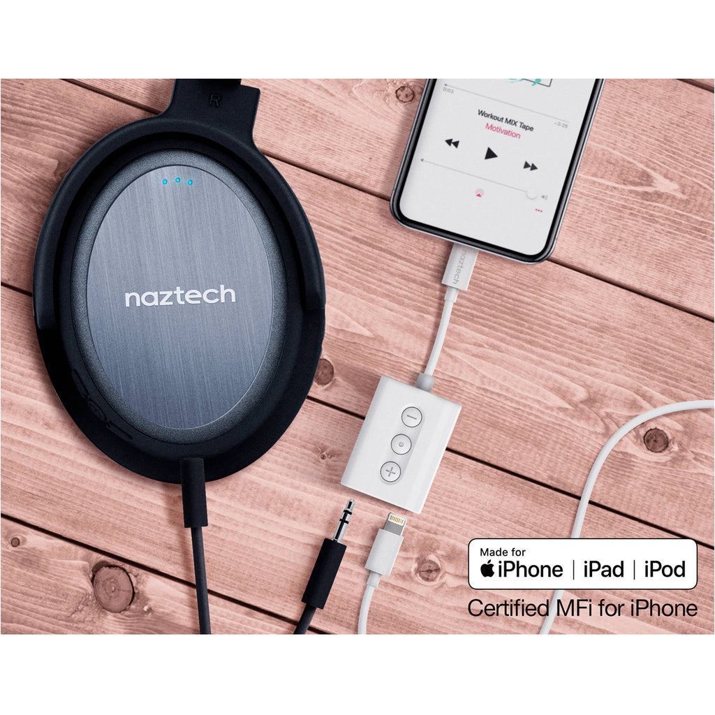 - The Naztech Audio + Charge with Lightning Connector features a built-in remote that allows you to control your calls, playlists, and Siri activation.