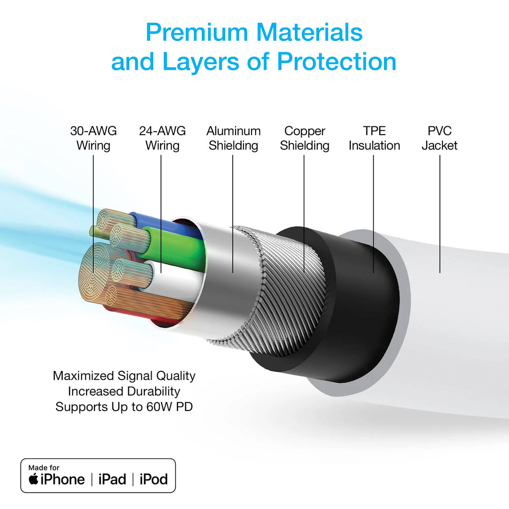 Naztech 30W USB-C PD Wall Charger with MFi Lightning Cable (White)