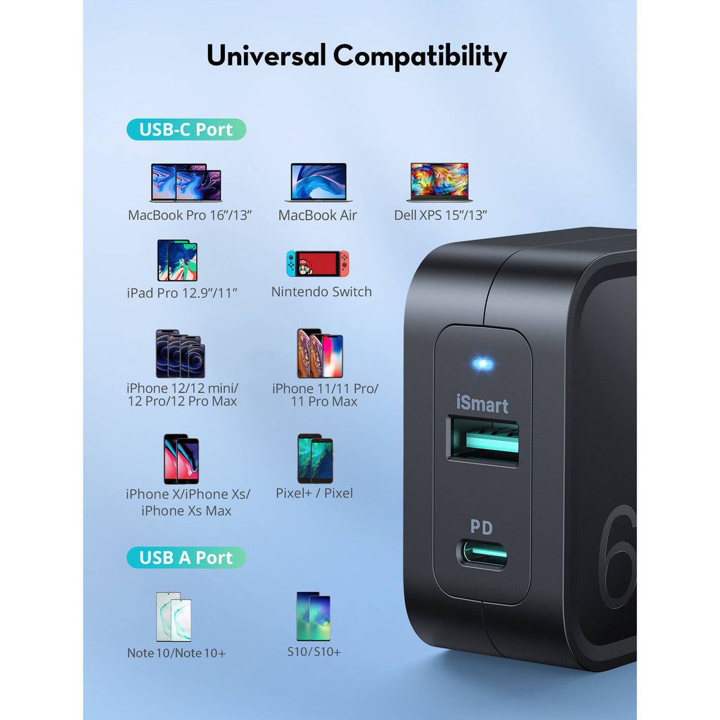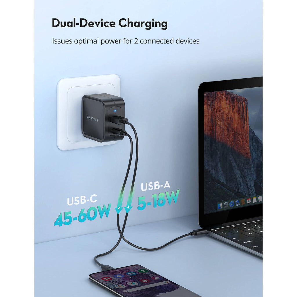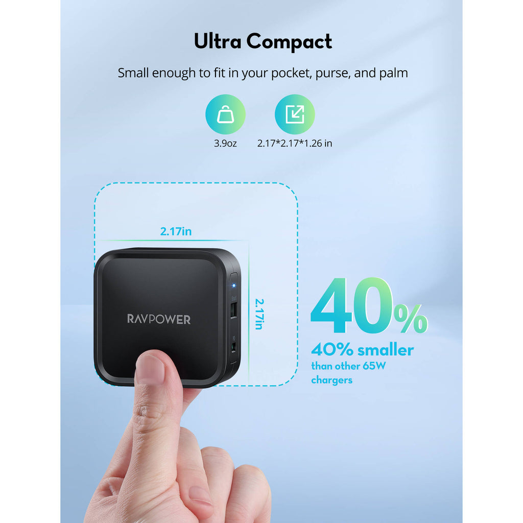 - RAVPower 65W 2-Port USB-C/USB-A Charger