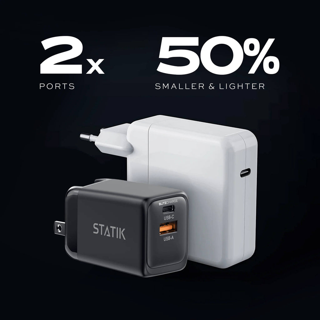 Statik 48W GaN Blitzcharge 2-Port USB Travel Charger