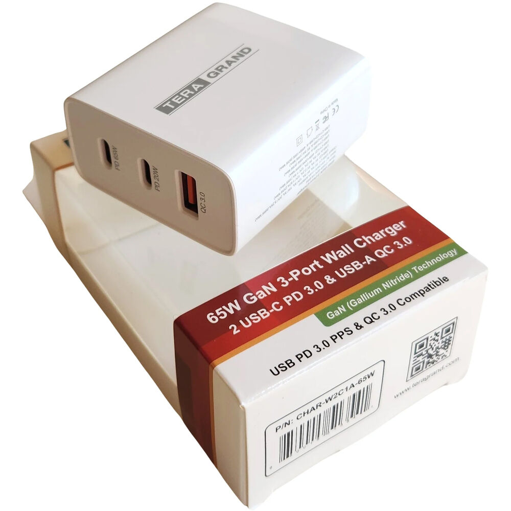 - Tera Grand 65W GaN Two USB-C and One USB-A Wall Charger