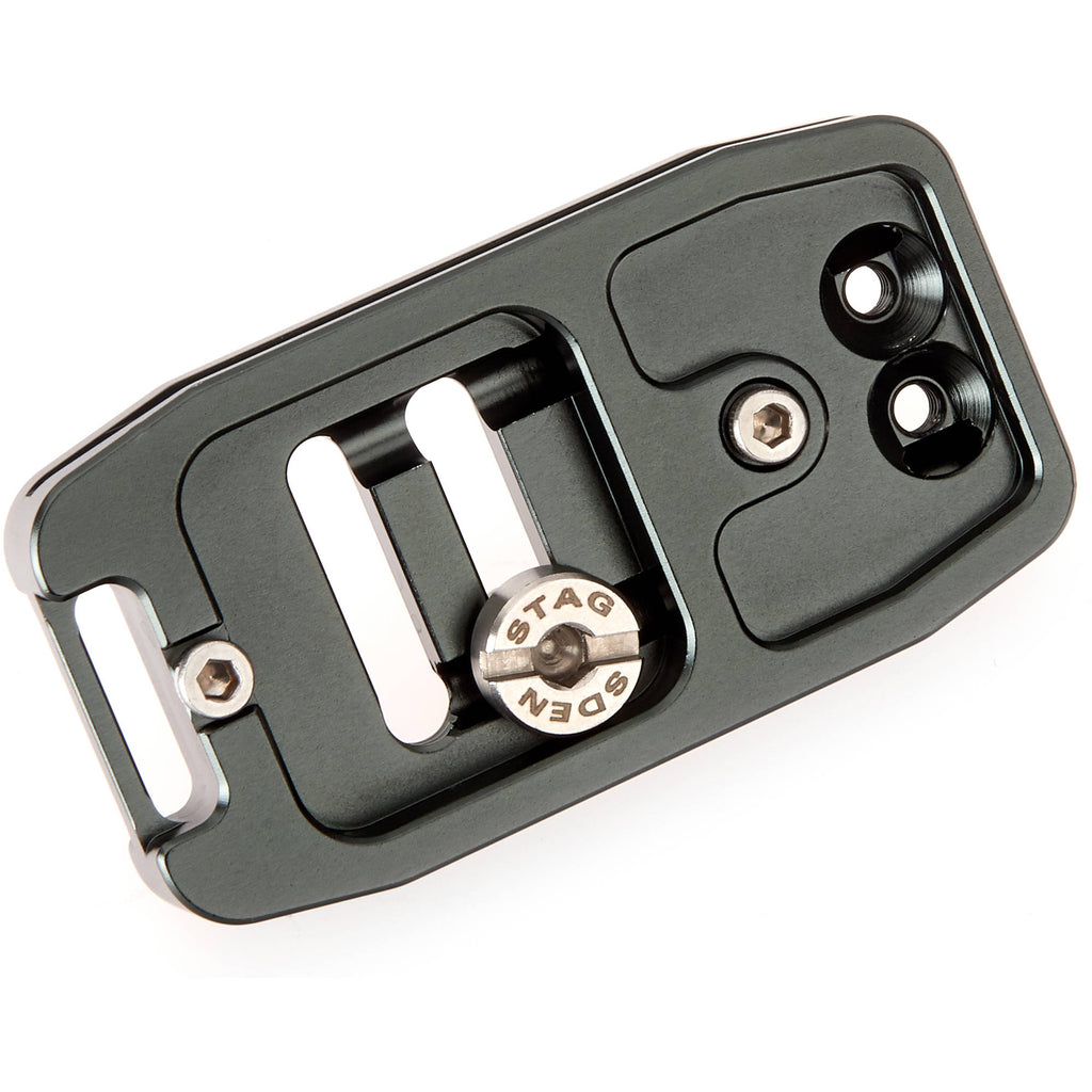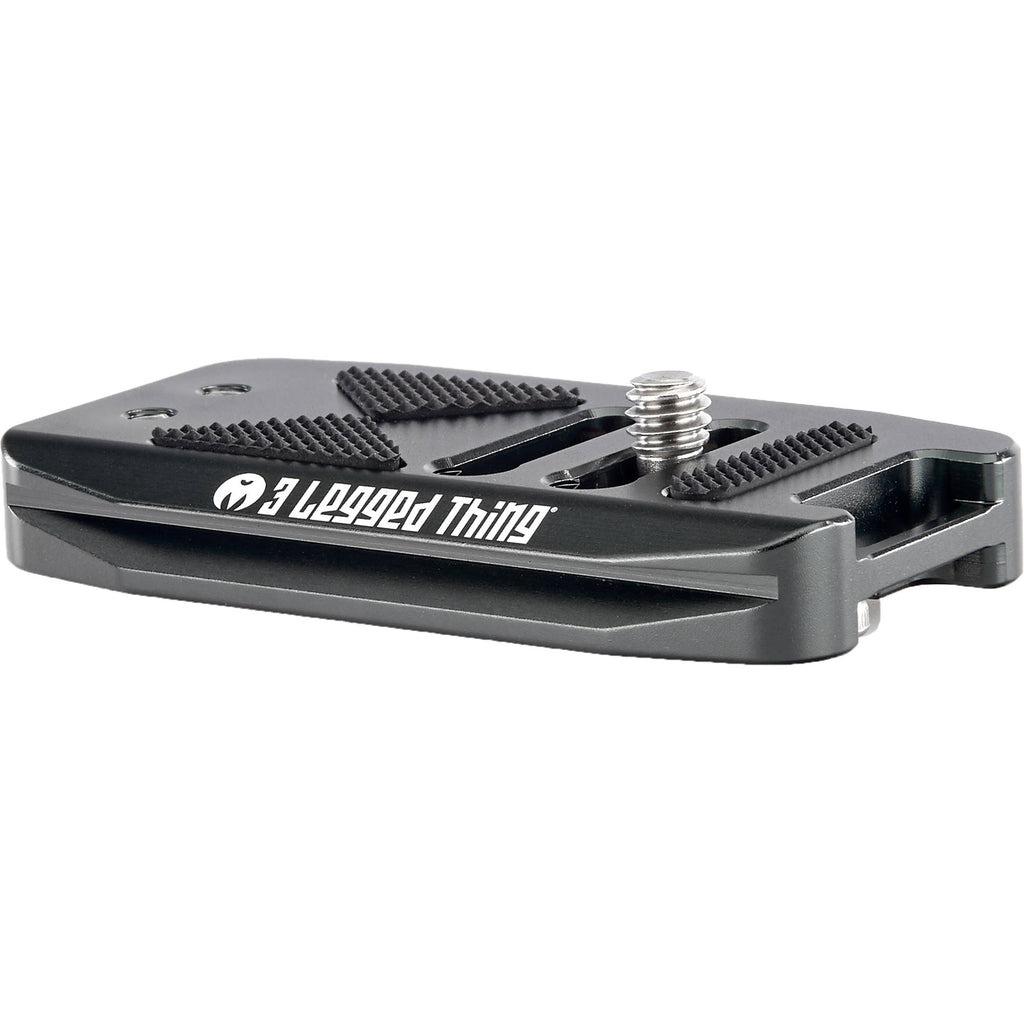 The BASE70 Arca-Swiss Compatible 70mm Wide Quick Release Plate from 3 Legged Thing is a mounting plate with a 1/4"-20 stainless camera screw and a rubberized anti-twist surface. The plate has a channel that conveniently allows you to move the screw position according to your requirements. Compatible with Arca-type quick release clamps, the BASE70 has an Arca-type 70mm dovetail base, a strap connector, two 2.5mm hex retaining bolts, and a metallic slate/gray anodized finish.