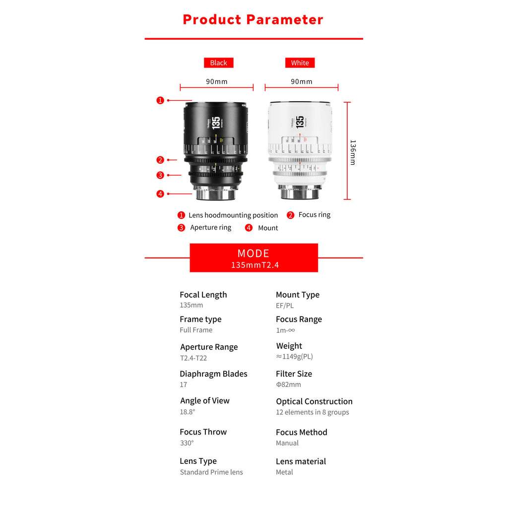 7Artisans INFINTE 135mm T2.4 Specs