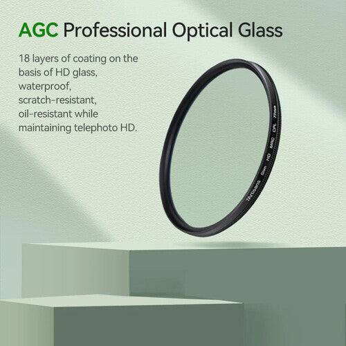 The 77mm 7artisans Circular Polarizer Filter helps to reduce reflections and glare by filtering out light that has become polarized due to reflection from a non-metallic surface. A polarizing filter arranges and filters this directionally polarized light perpendicularly to the reflected light, allowing for the absorption of much of this light. This results in a noticeable reduction of glare and reflections from non-metallic surfaces and an increase in the saturation of skies and foliage.