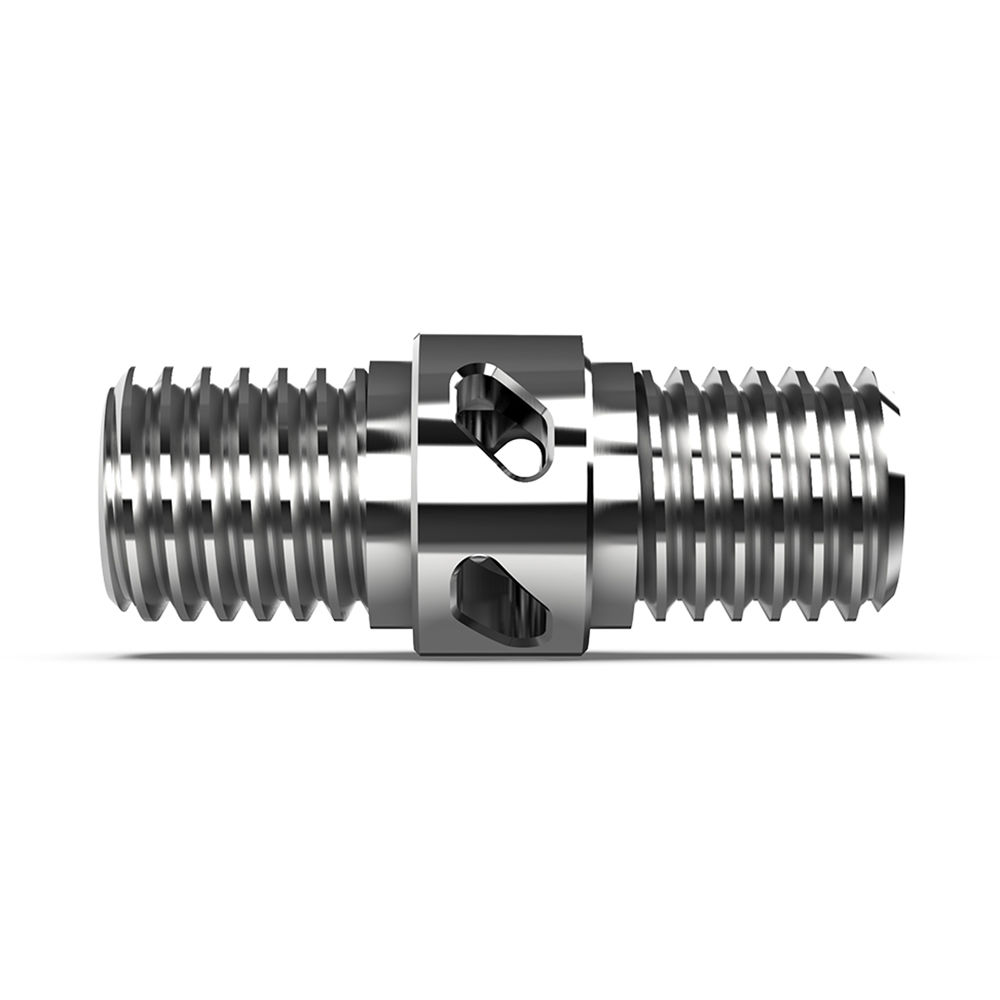 15mm Connector with Dual Male ThreadsJoins Threaded Rods to Create Longer RodStainless Steel ContructionDecorative Cutouts in Center The 8Sinn 15mm Rod Connector v2 enables you to join two 8Sinn 15mm threaded rods to create a longer rod. This stainless steel connector features decorative cutouts in its center.