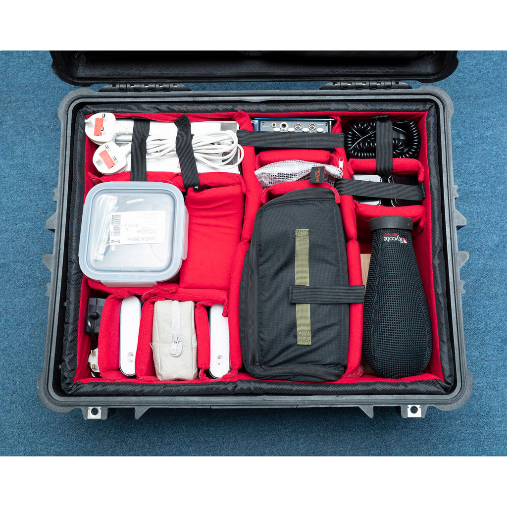 This padded Divider Set from A-MoDe Limited is designed to fit in a Pelican 1600 case. Made from 230T waterproof nylon, the dividers are adjustable so you can customize the interior of your case to fit the gear you want to carry. Included are three long dividers, 22 short dividers, and eight black elastic webbings.