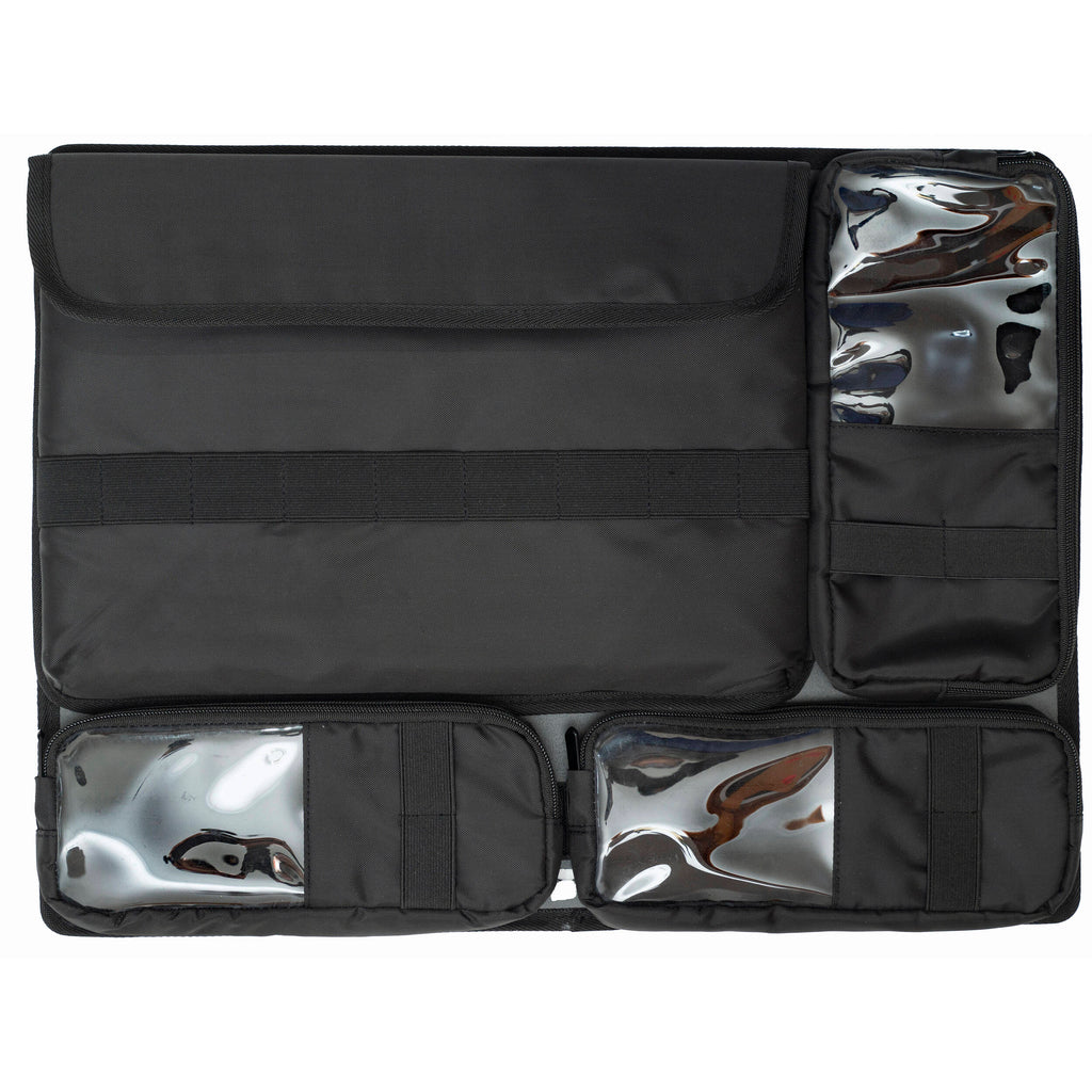 The Laptop Lid Organizer for the Pelican 1560 Case is made from durable 600D nylon and has three clear TPU pockets so you can easily identify your accessories. It adds more than a third of storage space to your case and has a waterproof sleeve that holds a notebook up to 14" or a laptop up to 16". The padded laptop sleeve is made from 2mm EPE. An installation pad and screws are included.