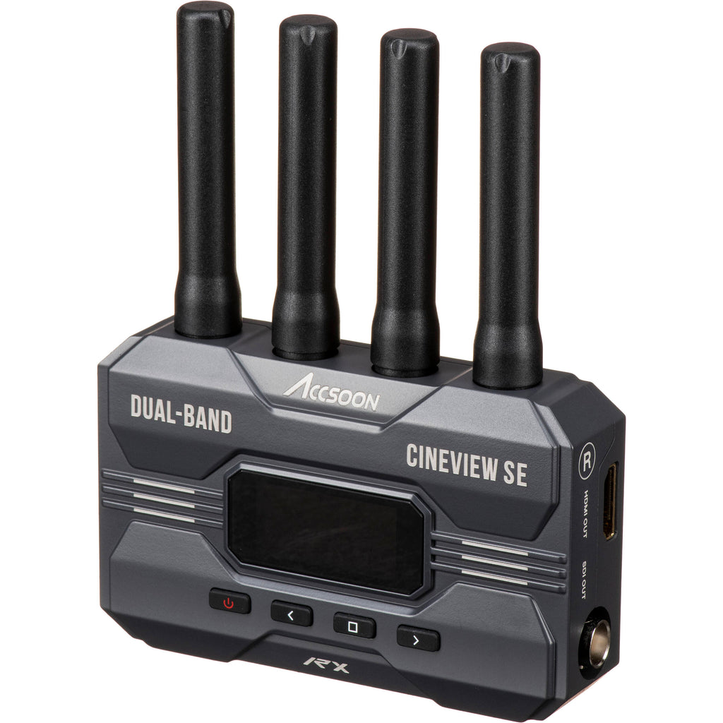 Add an extra receiver to your CineView Quad transmission system with this CineView SE Extra Receiver from Accsoon. The receiver can be added to an existing system since transmitter can simultaneously send a 1080p60 video signal to any mix of receivers and iOS/Android smartphones and tablets up to four total. You can send video signals over distances up to 1200' with only a 50ms delay.
