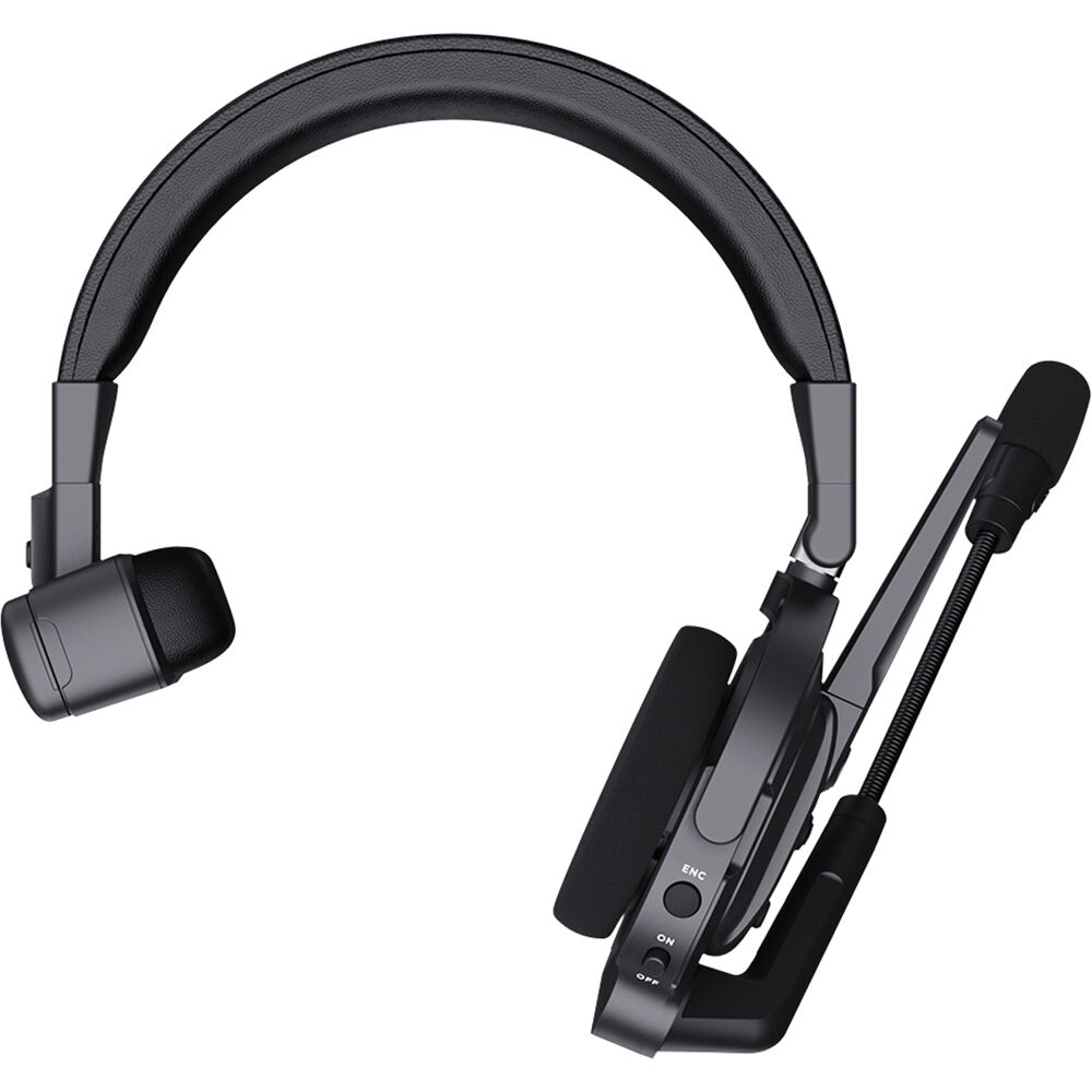 Intercom with a host without a hub using this CoMo Wireless Intercom Headset from Accsoon. This remote headset connects to a host headset up to 1300' away, providing clear intercom audio for over 13 hours. The headset doesn't need an external hub to operate, and features a battery, antenna, microphone, a single earpiece, and a padded, adjustable head strap all built in.
