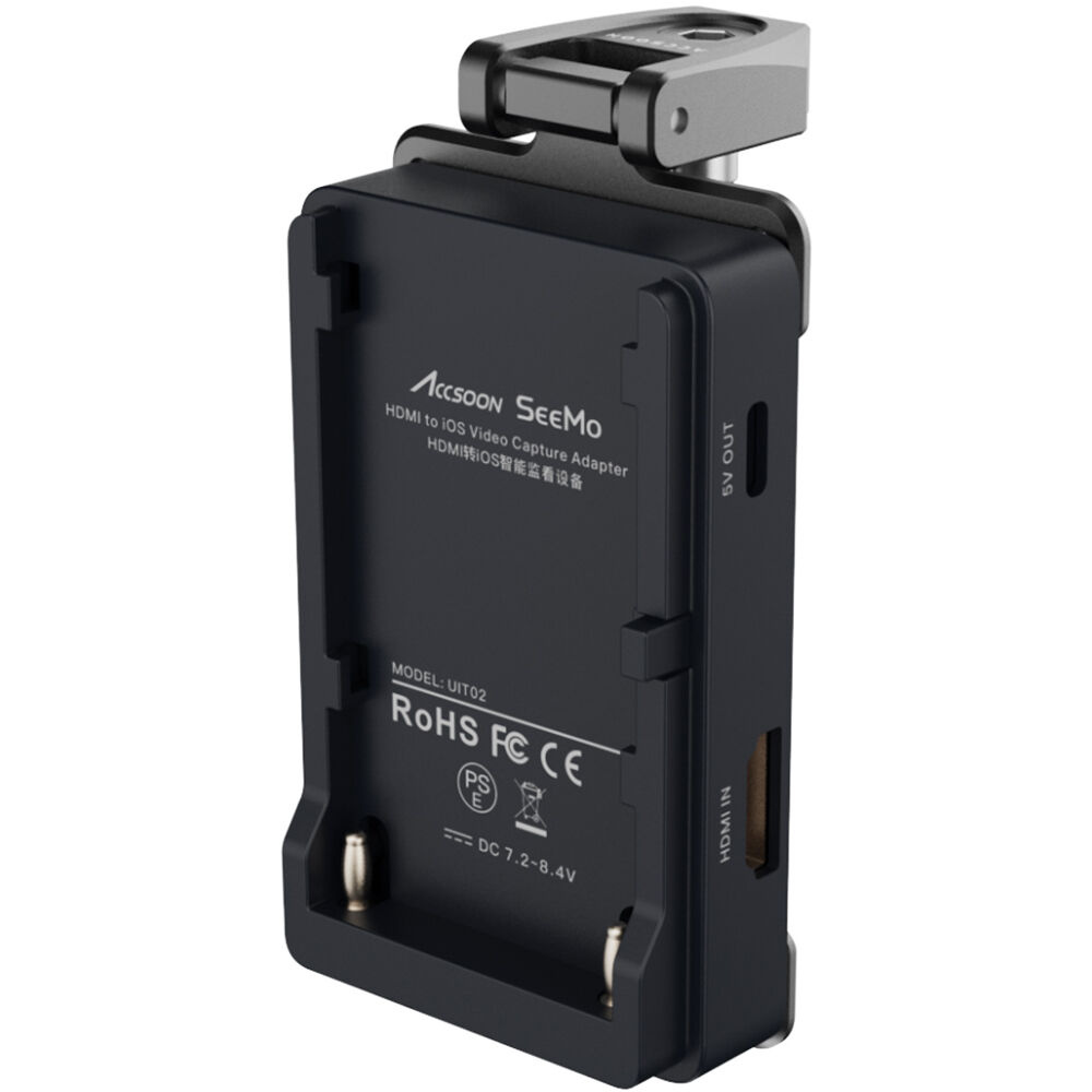 Made from a lightweight aluminum, this Mounting Adapter Plate for SeeMo from Accsoon is designed to clip directly onto an Accsoon SeeMo. Once in place, the entire unit can then be conveniently attached to a variety of camera rigs via a standard 1/4"-20 connection, such as the Accsoon PowerCage for iPad and iPad Pro. The plate features an anti-rotation pin for added security.