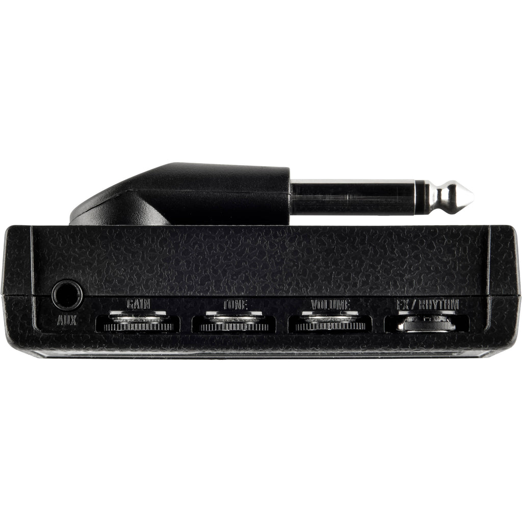The amPlug Tone Hammer includes numerous FX from Aguilar, including a compression circuit derived from the TLC Compressor, a short room-style reverb for adding depth and ambience, and a chorus effect inspired by Aguilar's Chorusaurus pedal. You also get a rhythm-pattern generator with adjustable tempo and a simple tilt EQ that adjusts bass and treble simultaneously. The fixed 1/4" male input retracts when not using the amPlug. The amPlug 3 Tone Hammer features a 3.5mm TRS headphone output and a 3.5mm TRRS aux input, which can also be used as a secondary output with a TRRS cable.